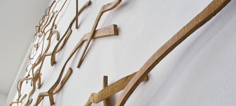 "Ausgehend vom Wachstum der unterschiedlichen Holzarten skulptiere ich vierkantige Profile, die dann räumlich arrangiert oder zu Konfigurationen gefügt werden."